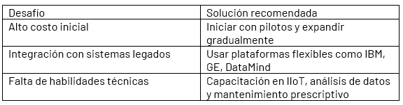 Anglo American y Newmont utilizan IBM Maximo y GE Digital para implementar mantenimiento predictivo en camiones, trituradores y cintas. En algunos casos, Anglo American redujo hasta 75 % del tiempo de inactividad